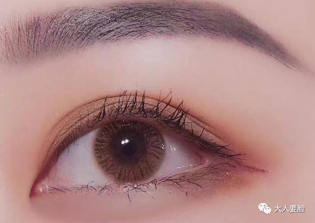 这款棕色和其他的橘棕不同,戴上眼镜了之后是灰棕色,在阳光下面是有点橄榄绿的,搭配冷色系眼影就显得比较性冷淡。