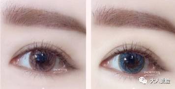 棕色款花纹比较接近瞳色,并没有明显放大的感觉,但是会显得眼睛有神。