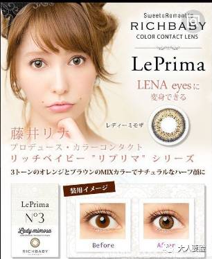 藤井莉娜代言的美瞳,小黑环即视感。上眼显得很精神,见家长必备!着色直径比较小,适合学生和职场淡妆的妹子们戴。