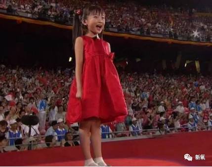 开幕式上一身小红裙,嗲嗲的唱着《五星红旗》,好应景。