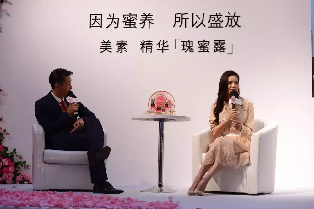舒淇现场还跟大家分享了自己的“冻龄"秘诀,就是今天另一个主角“美素精华瑰蜜露”,利用玫瑰和蜂蜜兩大美颜圣品,把自己蜜养起来!她坦言:“之所以跟美素结缘,是因为自己非常喜爱玫瑰和蜂蜜。”