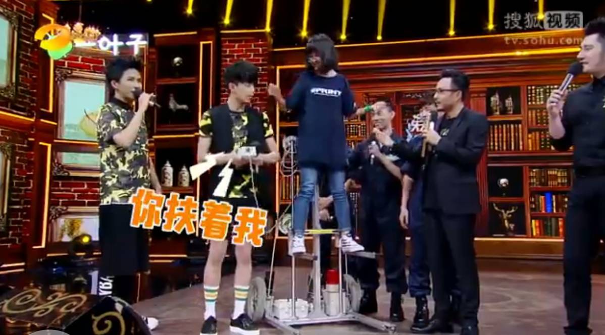 参加《天天向上》的时候,有个女生上来做游戏,踩在什么安全措施都没有的凳子上。