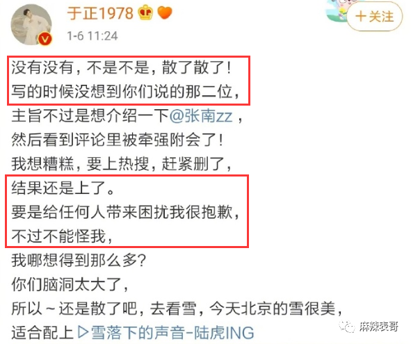 寥寥几句,于正就上热搜了。