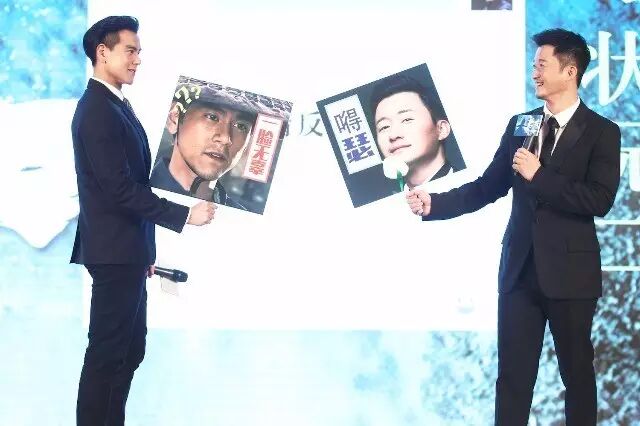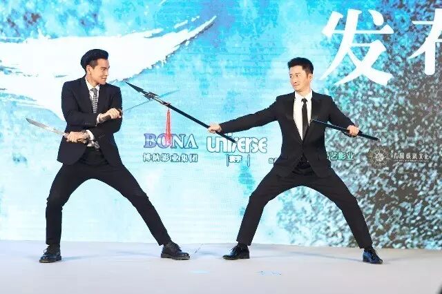 当天发布会主题定为“兄弟阋墙”,即师兄弟反目成仇的意思,在现场两人除大秀兵器外,画风一转,以动作见长的两位男神来了场别具一格的表情包大战,场展开画风犀利的表情包大战,High翻全场。在遇到彭于晏独自吃美食的情况时,吴京选择“纯良”表情回应,在遇到不想原谅师弟所犯错误的情况时,吴京玩笑道,“他做什么事我都原谅,因为爱是伟大的”,笑翻全场。