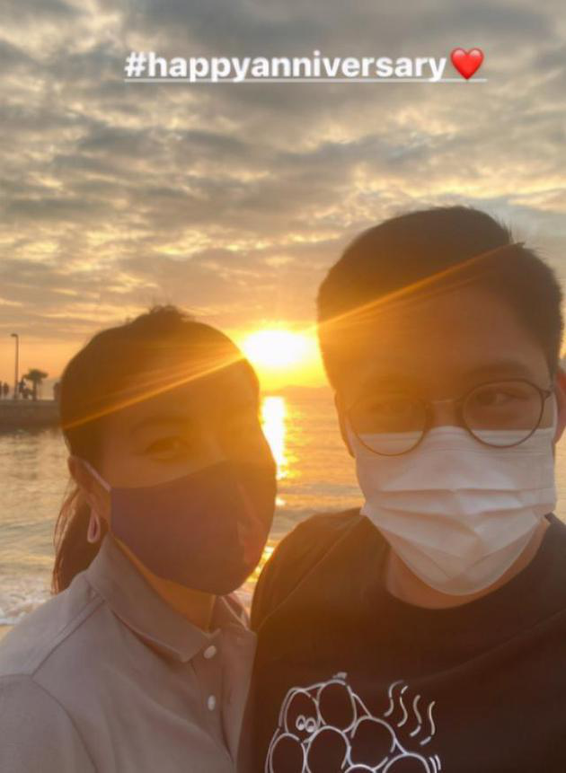 霍启刚晒出俩人一起庆祝结婚8周年的照片,俩人举杯相庆,是寻常恩爱夫妻的模样: