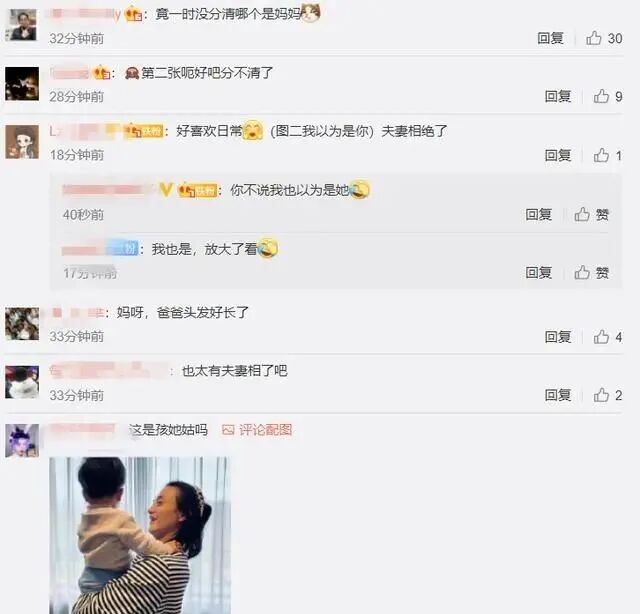而且值得一提的是,留着长发的周一围似乎刚刚结束拍摄,还没来得及更换造型,只是简单用发箍打理了一下头发,如此“特殊”的发型加上一脸宠爱笑容,简直像极了一个普通大妈,包括评论中也有不少网友调侃:“这是孩子他姑吗?”