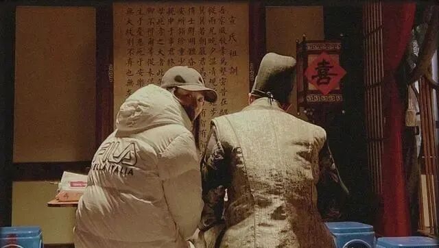 从照片来看,夫妻俩身处拍戏的现场,周一围头上戴着戏服用的帽子,身体为了保暖套了一件羽绒服,并坐在桌子前不知是用餐还是在看剧本,至于朱丹,则坐在周一围身旁,她也紧紧贴着老公,并转头看向镜头,不得不说,这种现代与古代,戏剧与现实的结合照出来的合影,也相当具有画面感。