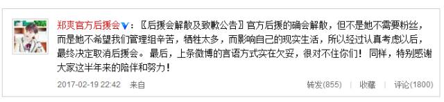 郑爽的官方后援会,又因为心理崩溃而宣布解散。