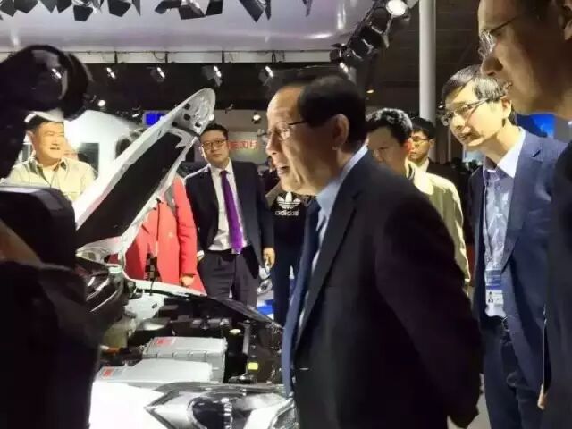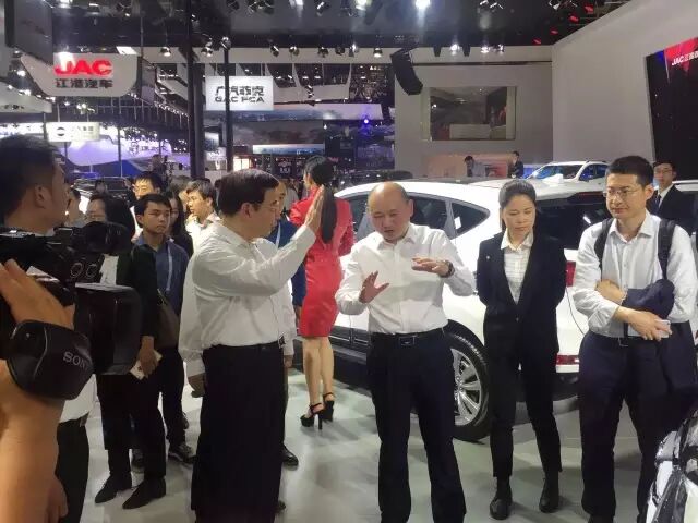 工信部部长苗圩莅临2016北京车展江淮汽车展台,重点察看江淮乘用车展品,重点关注了新能源汽车。