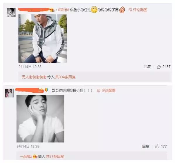 郑恺你脸小啊~~~你脸真的超小啊!!没见过这么补刀的,还配图!几千个点赞啊!