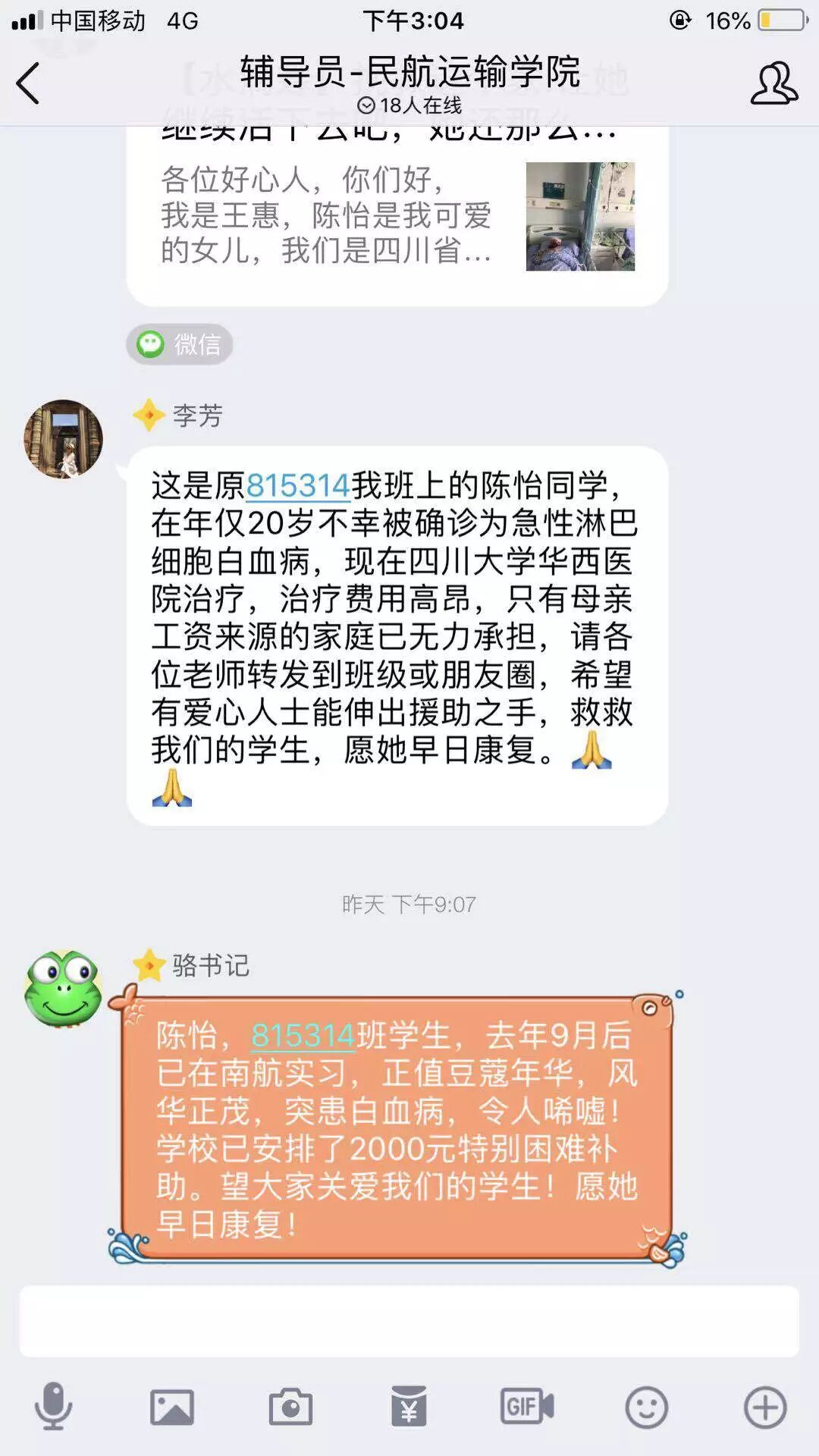 815314班的陈怡同学,你还有很多很多梦想没有完成。20岁的你正经历着我们不曾经历过的磨难,你很勇敢,很坚强。
