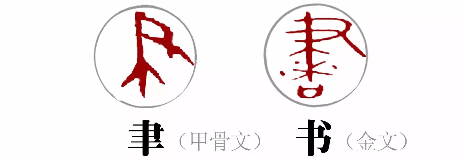 聿(yù),笔的本字,图形是手握木竹。书的图形,是手持毛笔书写。