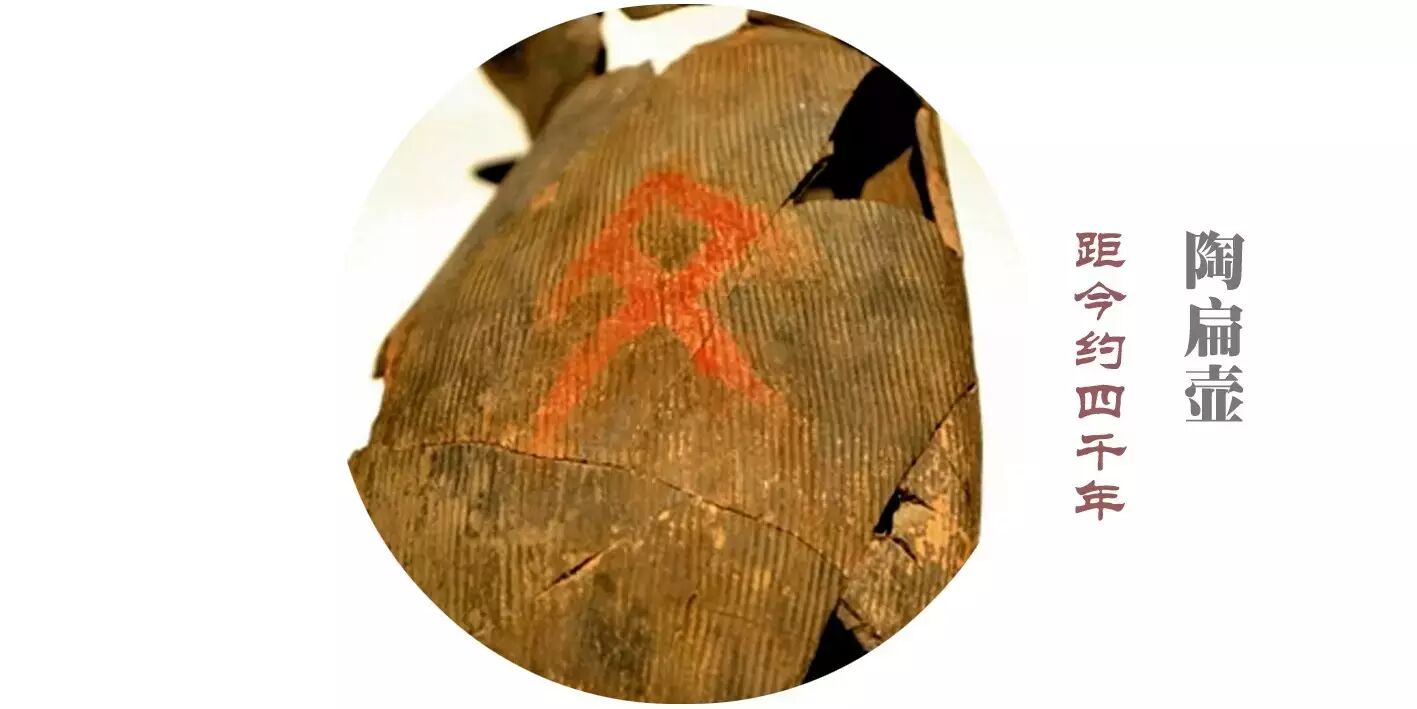 陶扁壶上面的字就是:文。四千多年前的这个字,跟今天的字,没有太大差别。