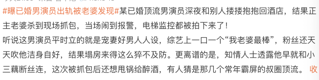 某爆料称,香港颜值高、性格平稳的贵公子哥类型男星(另外还有“三字顶流”“香港背景”“古装剧代表作”的关键词),婚后赚了不少钱属于半隐退状态,私生活混乱各种约女生还给安排到家附近的地方保持联系,后来小三忍不住挑衅正宫被抓包,正宫直接上门找人把小三打了。有网友根据关键词猜测会不会是张智霖?