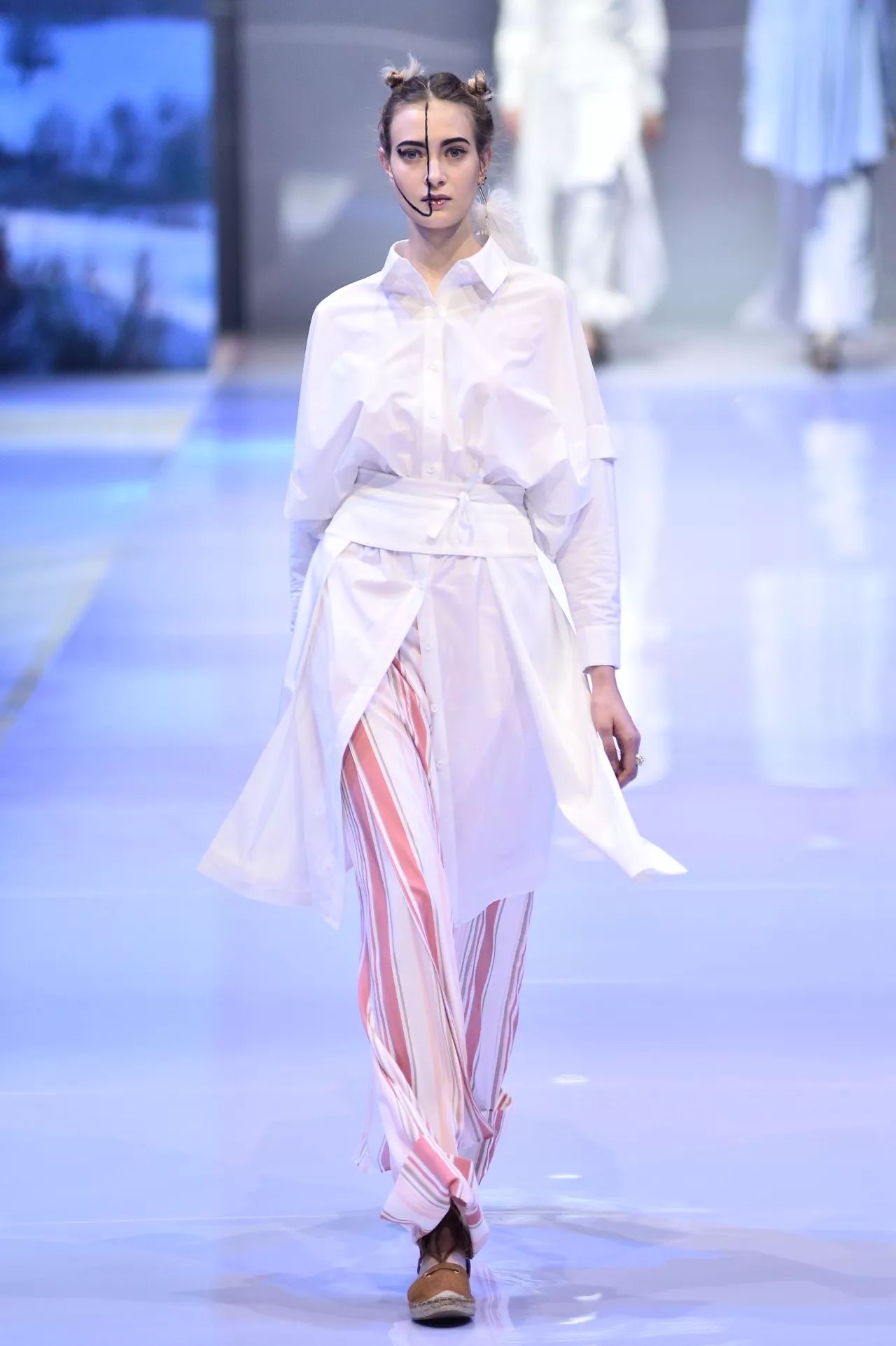 最终两人一拍即合,决定探索自然的奥秘,将对自然一景一物的感悟,用创造思维加以锤炼,以极简的手法,通过服装表现出来,为现场观众呈现了一幅关于自然的诗意画卷,呼吁人们保护环境。