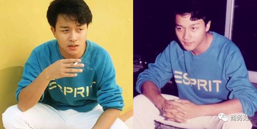 那时林青霞是香港Esprit的老板娘,两人又私交甚好,所以张国荣那时很喜欢穿Esprit的套头衫,衣服舒适简单,穿起来也随性自然。