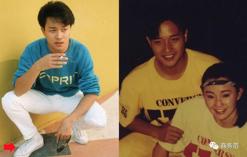 其实上面穿Esprit搭配的鞋子就是Converse Chuck Taylor经典低帮,和张曼玉同框的这张照片,两人也都穿了Converse 的logoT恤。