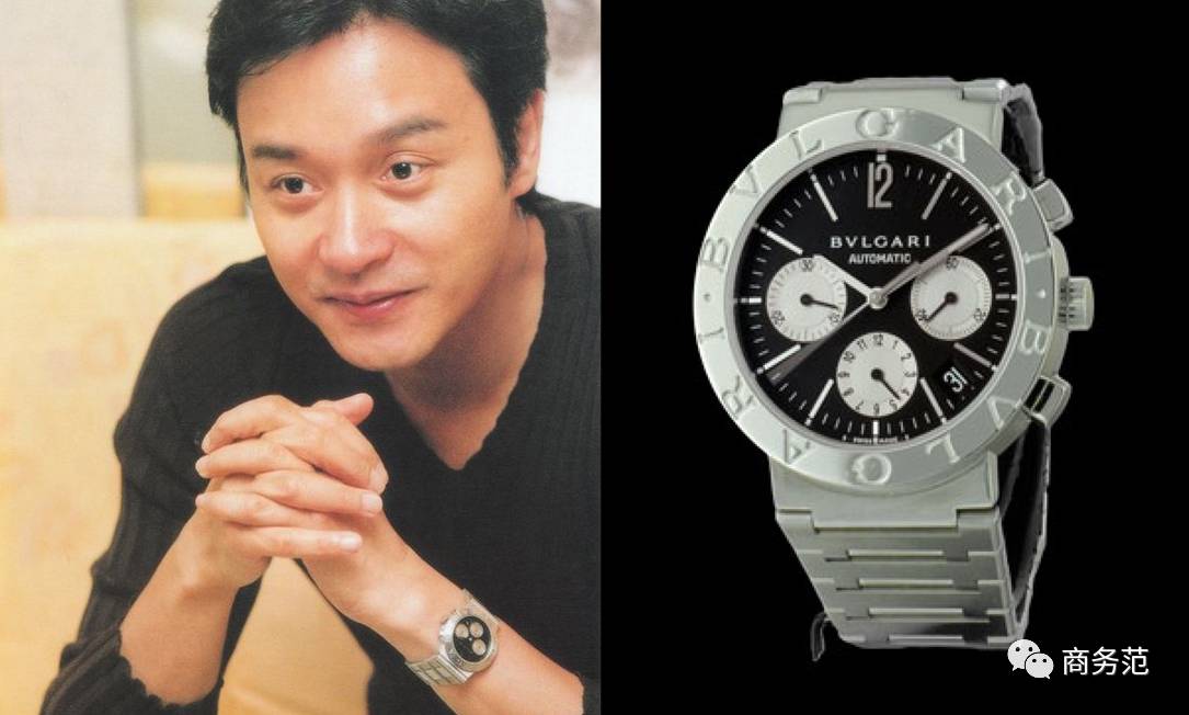 这款BVLGARI BVLGARI经典皮带腕表,看起来非常简洁,颜色搭配却很贵气儒雅,跟张国荣的气质很搭配,据说哥哥去世前就是戴着这一款手表。