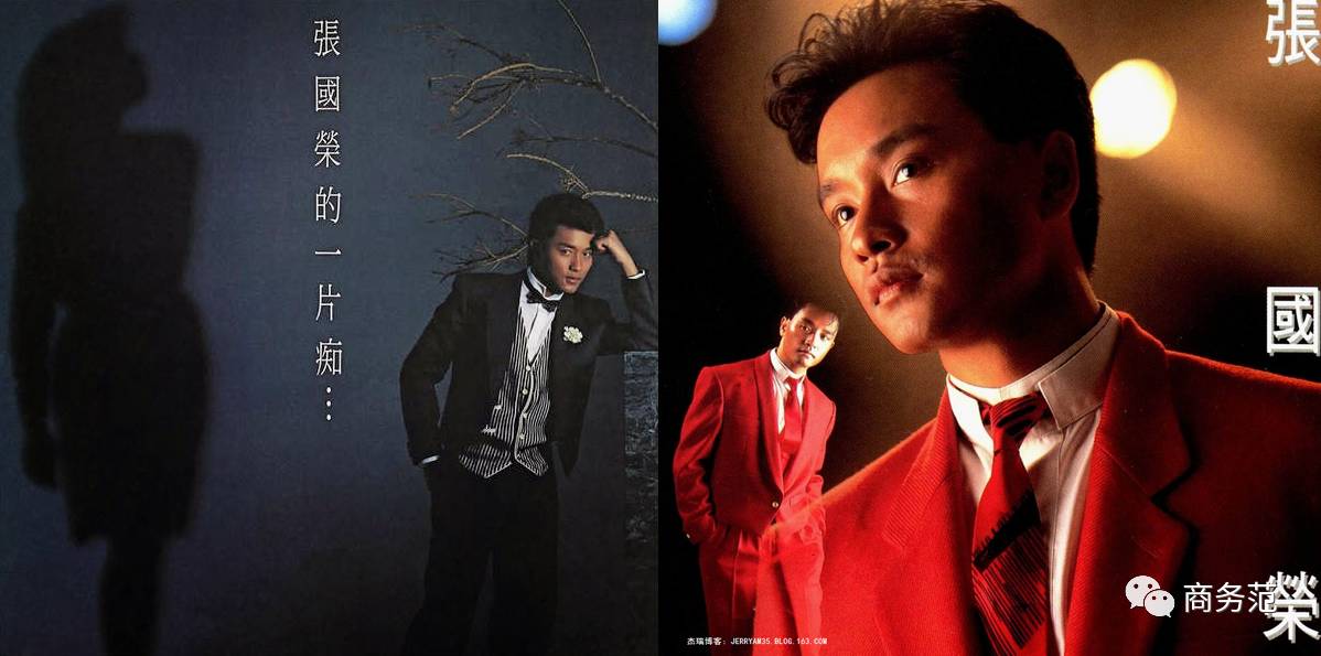 张国荣对于衣着有自己的见解,从1986年起就不用形象设计师了,当时很多唱片封面,也都是穿着Giorgio Armani,从1983年的《一片痴》,到1986年的《迷惑我》↓