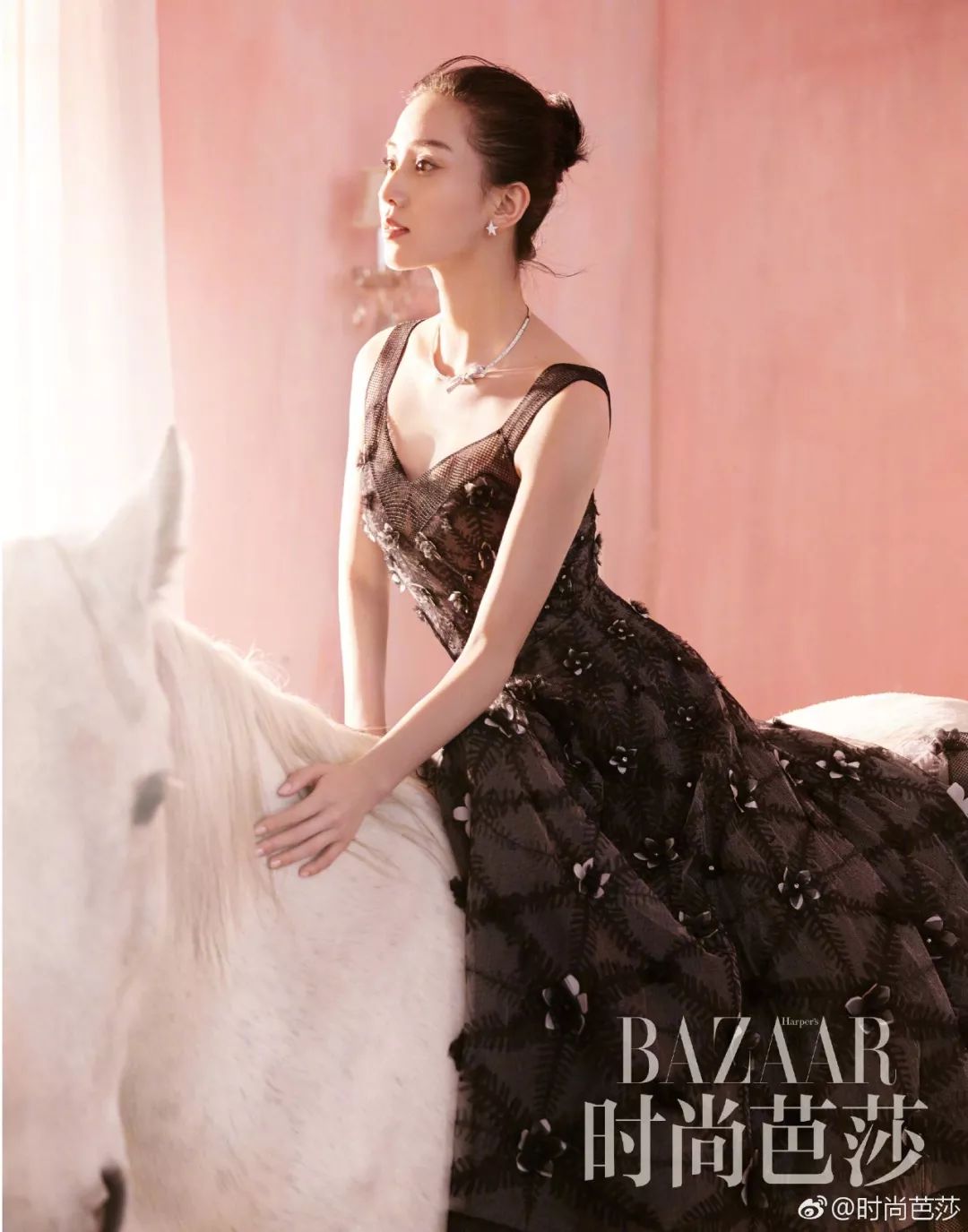 因为肩颈线条漂亮而上过热搜的周韵也是天鹅颈的代表,精致的锁骨、漂亮的天鹅颈加性感的一字肩,一样不少。