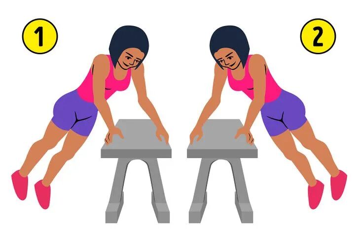 弯曲膝盖,从椅子右侧跳到左侧,再迅速跳回右侧;