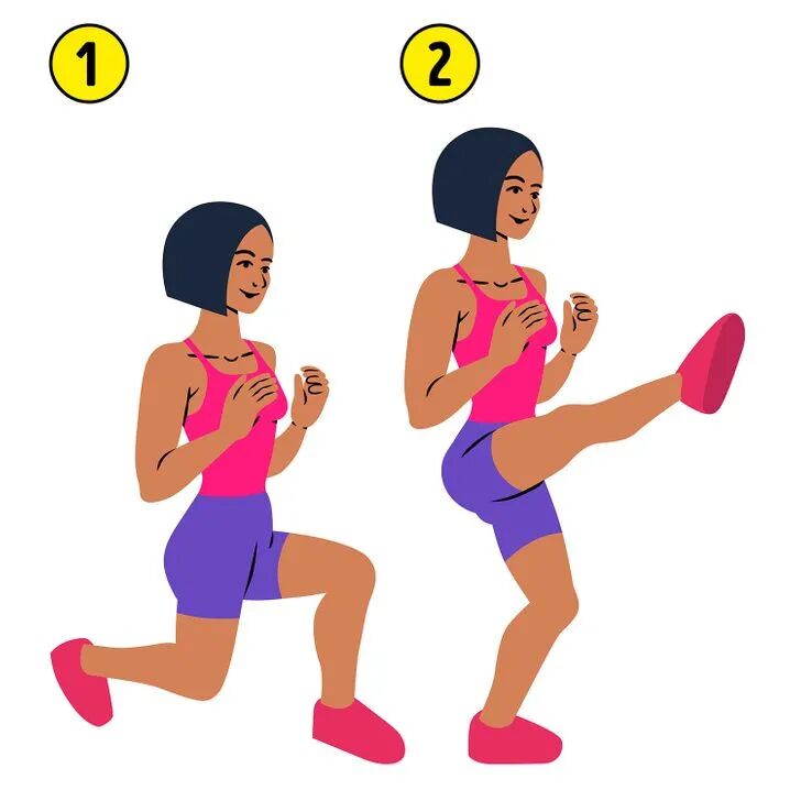 左腿站起来,右脚向前踢;然后换另一侧重复;