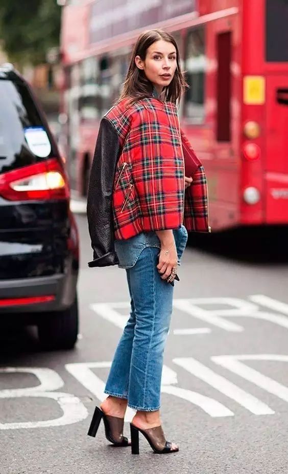 带有格子元素的短夹克非常适合小个子,提高腰线,拉长腿部线条(原谅我,说了八百遍还是要说)最流行的单品和元素结合在一起,想让人不回头都很难~