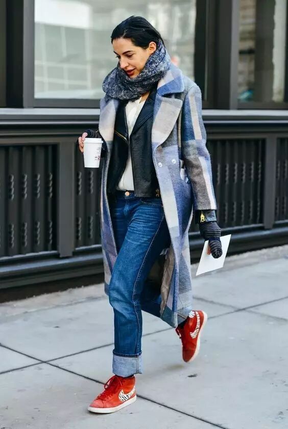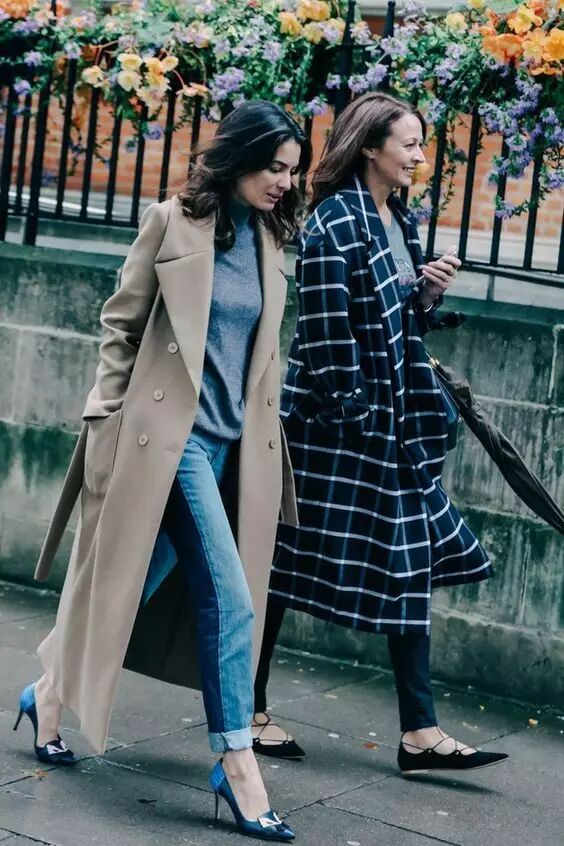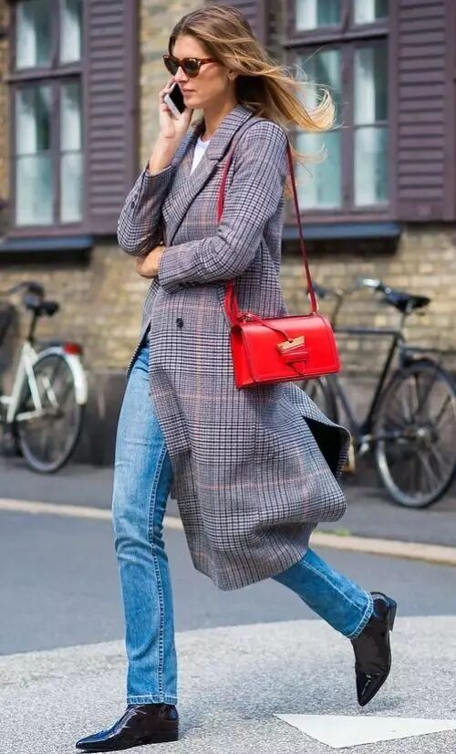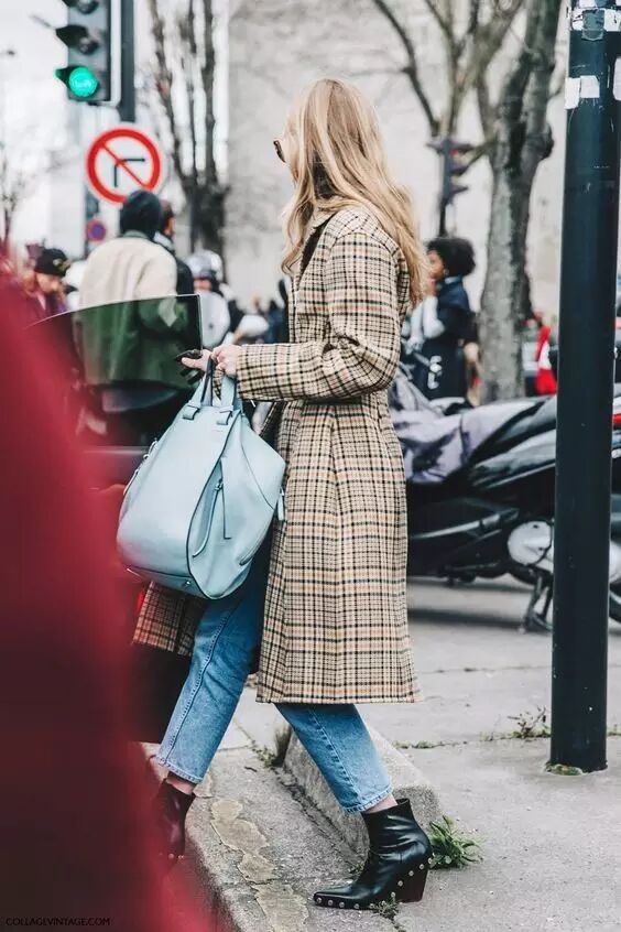 格子大衣+牛仔裤带有一点复古嬉皮士的感觉非常时髦~适合任意轻闲的约会、出街。