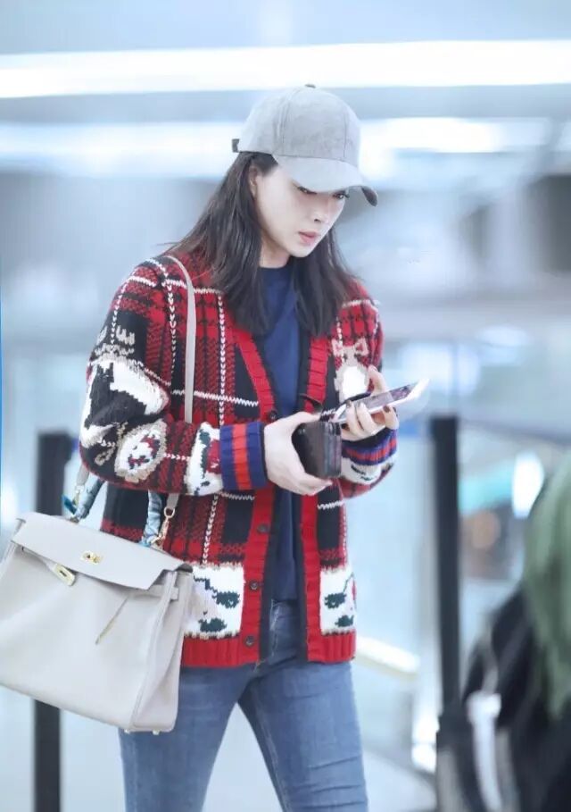 蒋欣这身外套+牛仔裤+球鞋的组合,日常到家了,本没有什么亮点,但是她选择了格子元素的针织外套点燃了整体的调性,减龄显白的效果很明显,看起来好像少女!