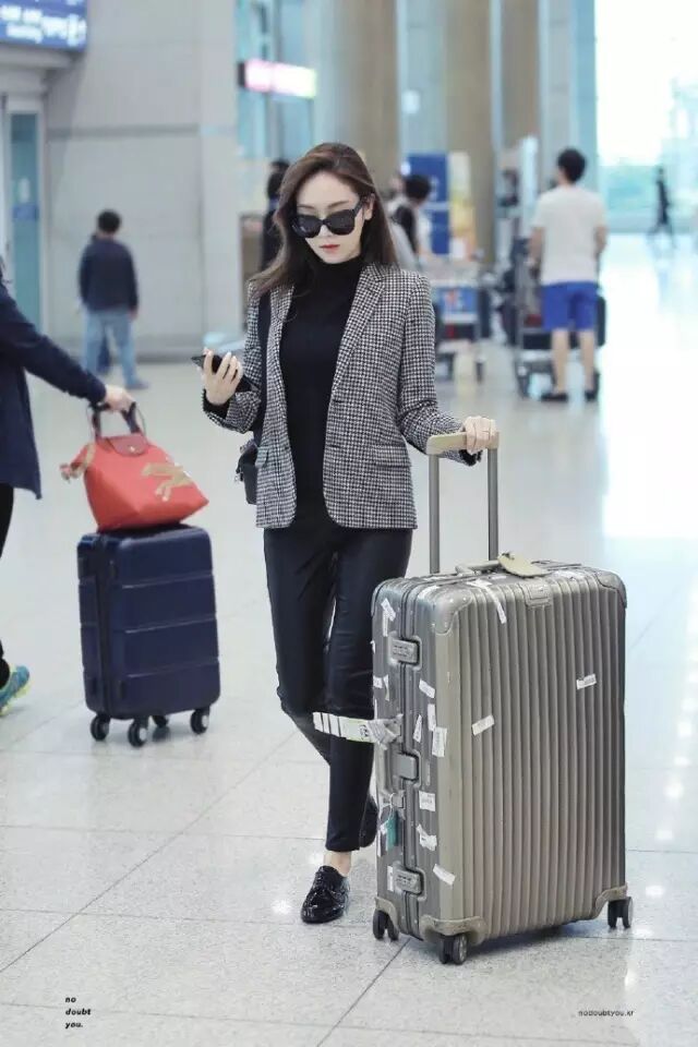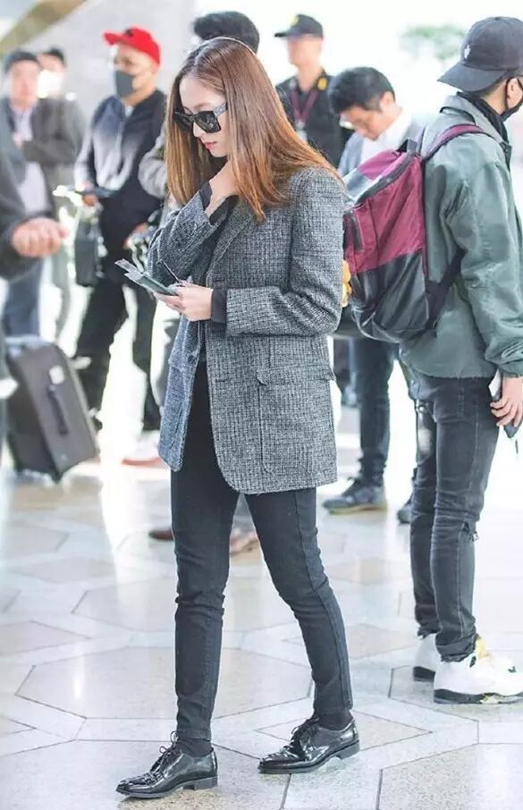 妹妹穿了格纹外套,姐姐Jessica也有同样的LOOK,是不是和Krystal的第二套很像~区别是姐姐的这件外套更修身更短。
