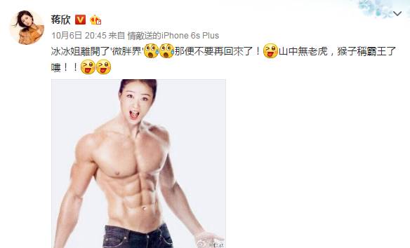 她还在微博上自我调侃,说范冰冰瘦了,微胖界她要称霸了,这霸气很蒋欣!