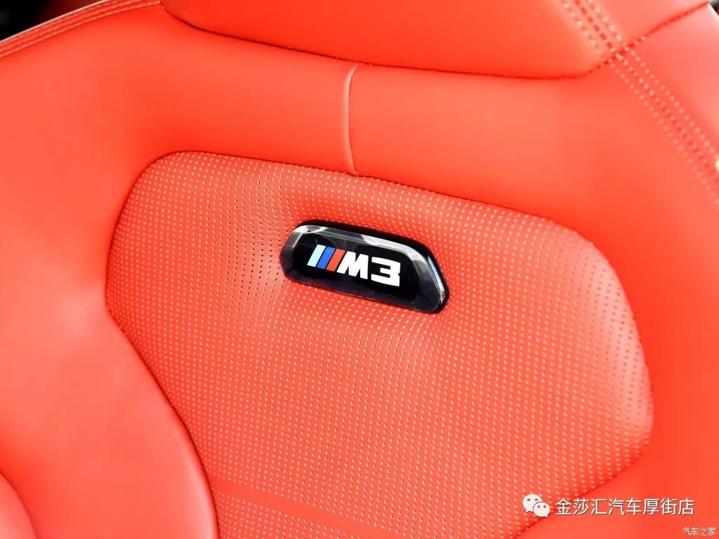 红色的桶状真皮座椅,时时彰显了M3的不俗身份,黑色的M3徽标,让它的运动基因更加深入骨髓。