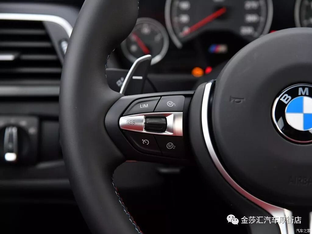 M3的中控台整体跟3系的一致,中控台整体偏向于驾驶者,M3的M运动方向盘,是最抢眼的,采用的是细腻柔软的NAPPA真皮包裹的,手感非常好,而且比粗壮,适合喜欢驾驶的老司机,M3的转向比320还要精准,还在于他的转向机构不一样,是采用了可变转向比的齿轮齿条结构,低速掉头,转向幅度大,轻松掉头,高速并线时,轮胎偏转角度小。