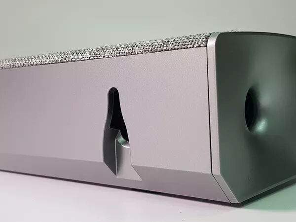 粗纱编织网罩,北欧设计质感Jamo旗下目前共有两款soundbar,除了SB 36外,上面还有一款SB 40。这两款soundbar本体外观大致相仿,不过SB 36宽度36英吋(这也正是 SB 36型号中数字的意义),比宽度40英吋的SB 40略短,而且SB 36也没有像SB 40一样具有无线连接的分离是超低音,因此SB 36可以说是极为轻巧的入门级soundbar。Jamo虽然再2005年为Klipsch集团所收购,但是在设计上还是承袭北欧的极简风格,这台SB 36也不例外。SB 36的网罩,以粗纱编织而成,虽然没有鲜艳的色彩,但是远远看来,就有如北欧家俱一般,散发着质感独具的低调设计气息。我在拆开这台SB 36的包装后,便有不少同事跑过来围观,异口同声地说:“看起来真的好漂亮!”