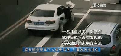 孩子竟模仿大人横穿车流