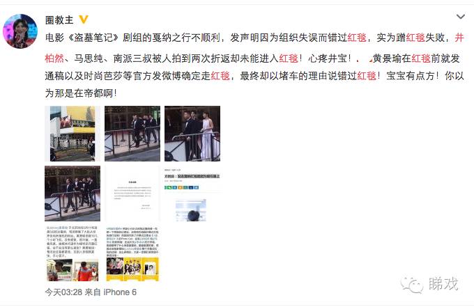 好了,开头睇妹所说的刺激事件就是这样了,原本就是欧莱雅代言人的井宝没有像巩俐、李冰冰一样跟着欧莱雅的邀请走红毯,反而是跟着剧组走红毯,没想到像“巴黎文娱”的声明所说,出了问题,原本欧莱雅官方赞助商妥妥的红毯瞬间变成了“错失红毯”。那么问题来了不是参赛影片要怎么才能走上红毯?