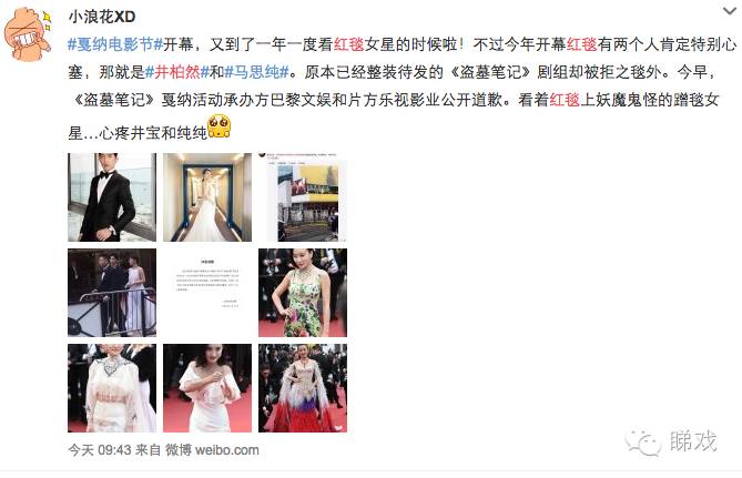 和井柏然一样错失红毯的还有马思纯,因为他们都同属电影《盗墓笔记》的剧组,《盗墓笔记》也并非戛纳的参赛影片,简单来说就是这个剧组来戛纳宣传,据说要走红毯的还有《盗墓笔记》原著小说的作者南派三叔。