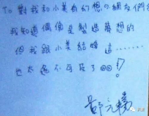 郑元畅还手写留言寄语他和贺军翔的CP粉们,说希望我和小美结婚,这也太遥不可及了。