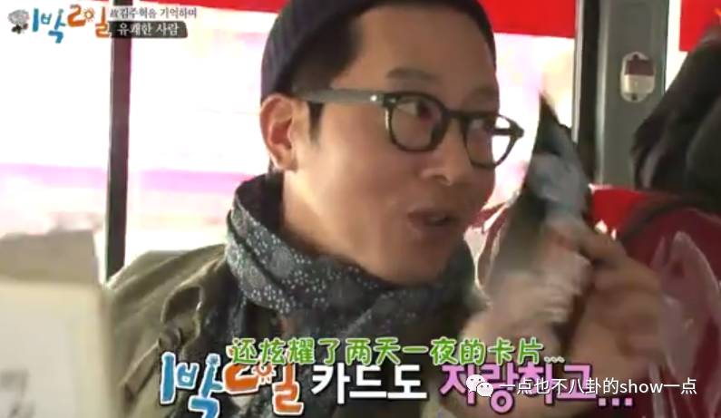 他和金柱赫曾同是综艺《两天一夜》的固定嘉宾,上图中戴着眼镜的综艺人Defconn也一样。
