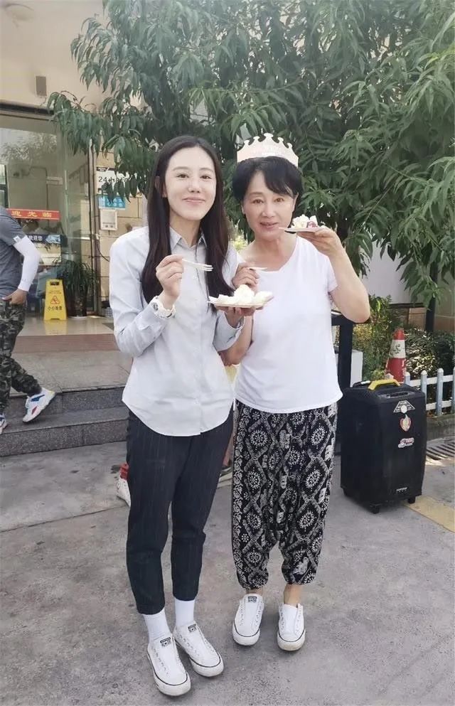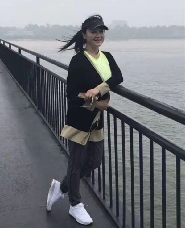 身上穿着一件衣服,下面搭配的是裤子,这样搭配起来其实显得整个人看起来也是比较的年轻,就觉得是她下面的那一双腿的肤色看起来比较白,而且搭配一双平底鞋,这样的造型显得就是比较契合她现在的年龄。