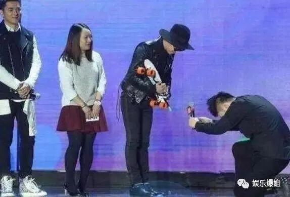 2013年,韩国人气明星权志龙的出现,没想到,杜海涛却现场求合影并单膝下跪为偶像颁奖。