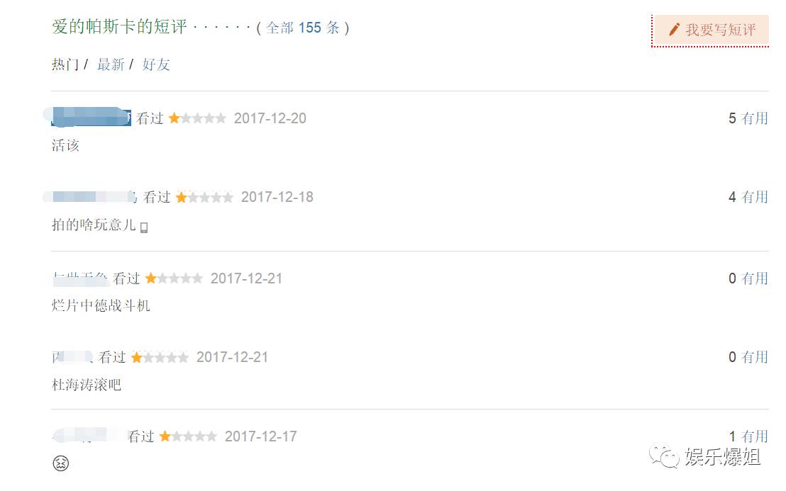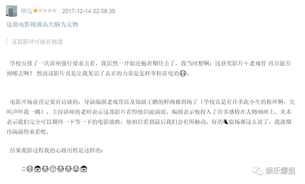 但是豆瓣那边至今也没有把这部电影的评分解禁,估计是打一星的用户太多,担心场面太惨烈吧……