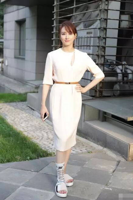 胡静一身淡色ol风套装,干练又霸气,上身深v的计划性感统统,腰间搭配棕色腰带,显得小蛮腰愈加的细了,手叉着腰很是优雅,搭配白色厚底凉拖,严谨中增加了几分随性。