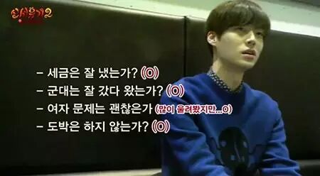 这天的节目中,罗英锡PD测试了一下安宰贤和《新西游记2》成员是否适合。今年已经三十岁的安宰贤已经从军队回来,虽然弄哭过女性,但没有赌博的爱好。也很好的交税。对此罗PD表示“这样就合格。”