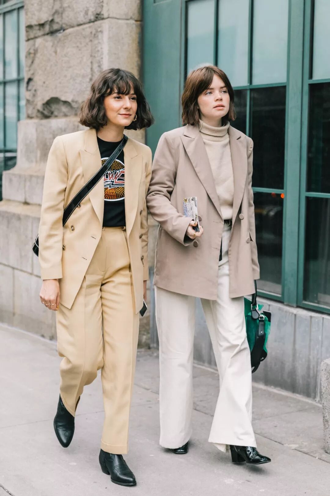 在颜色上深色系看上去更加职业化,但只要搭配得当,浅色系的套装更显得活泼又时髦。比如粉色、鹅黄色套装配上一些年轻化的单品,就非常洋气了!