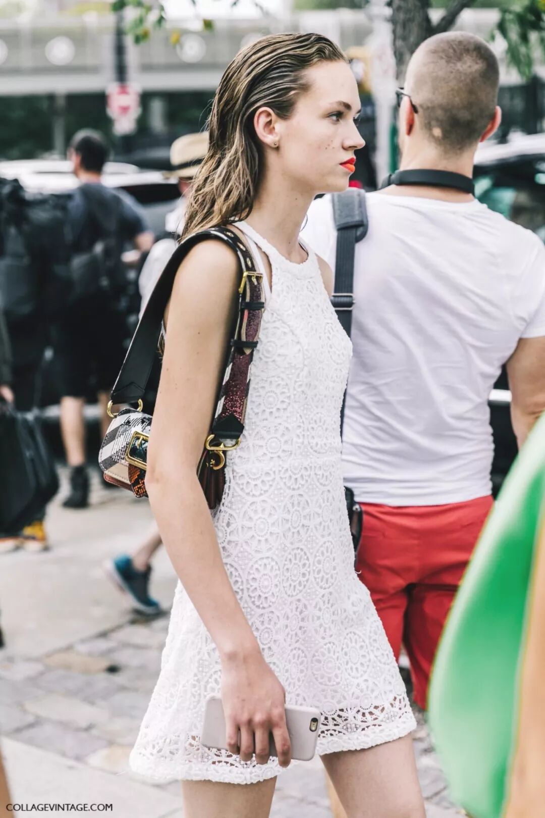 简洁利落的one piece搭配蕾丝就会中和的,刚刚好,不会太腻,又很舒服。