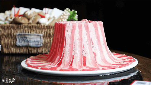 仙气缭绕的火山肥牛是店内的招牌菜品,颜值超高!肥牛肥瘦相间,纹路非常好看,涮15秒就可以,千万别涮过时了!红油热锅中稍涮变色即可食用,牛肉味鲜香。