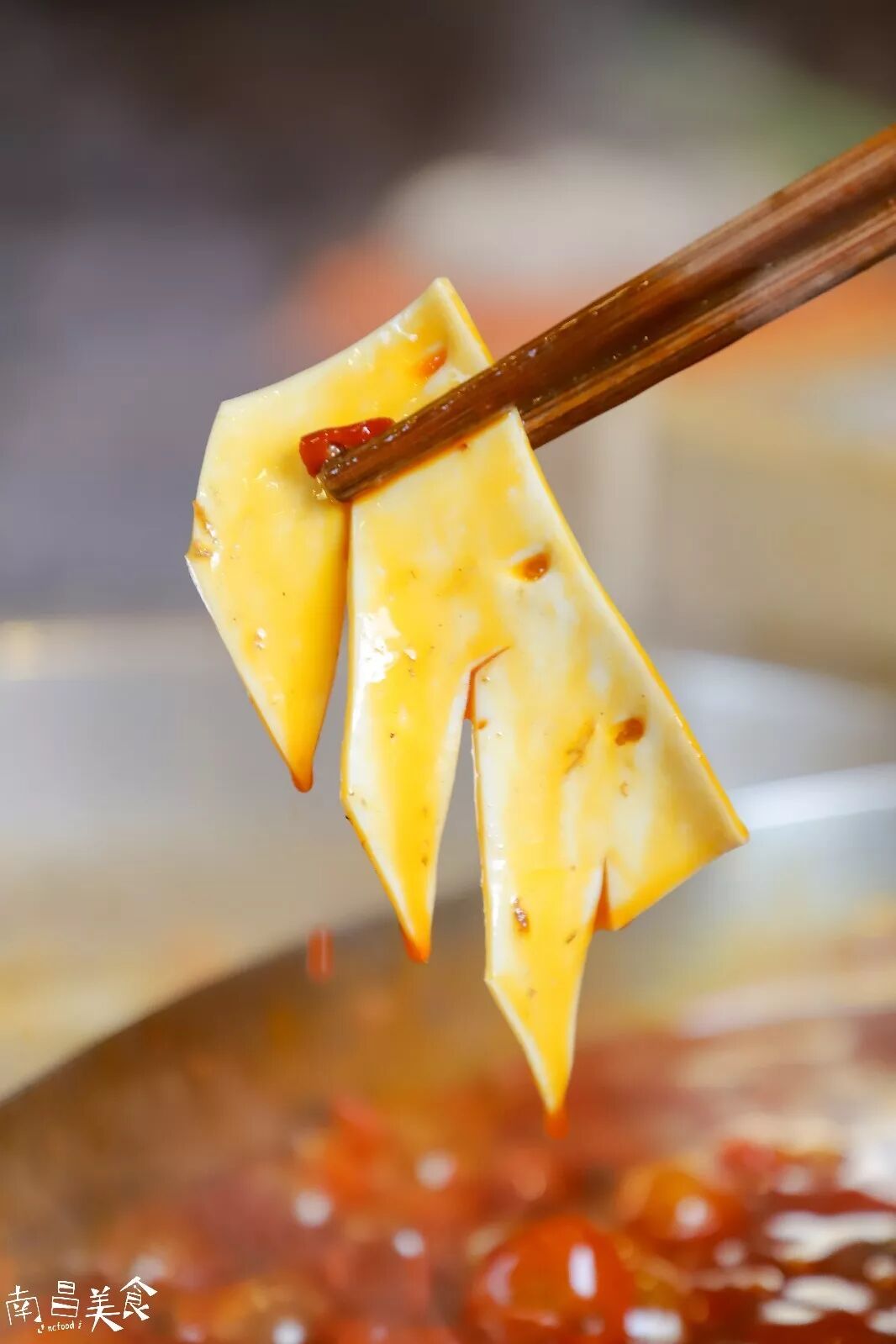 在辣锅里涮上15秒,再进油碟里蘸几下,香气扑鼻。爽脆的口感嚼起来让人快感十足,每咬一口,都感觉有个小宇宙在口腔中爆炸。
