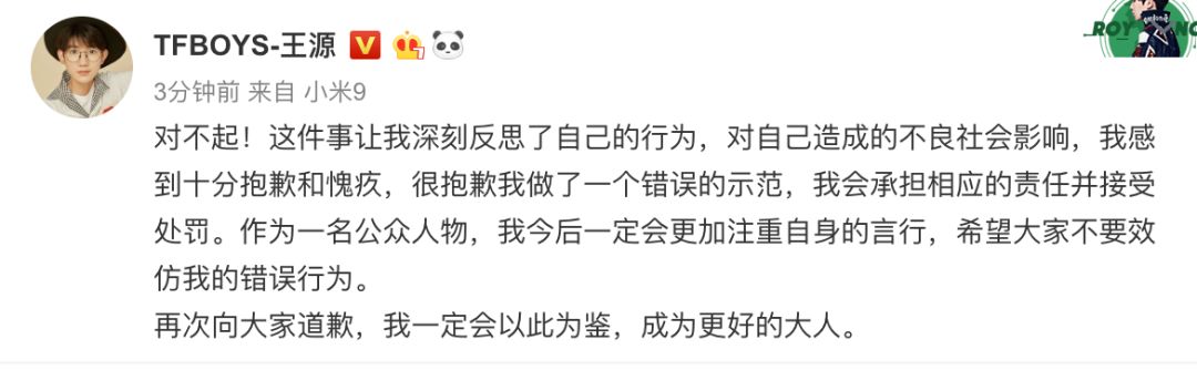 对不起!这件事让我深刻反思了自己的行为,对自己造成的不良社会影响,我感到十分抱歉和愧疚,很抱歉我做了一个错误的示范,我会承担相应的责任并接受处罚。作为一名公众人物,我今后一定会更加注重自身的言行,希望大家不要效仿我的错误行为。