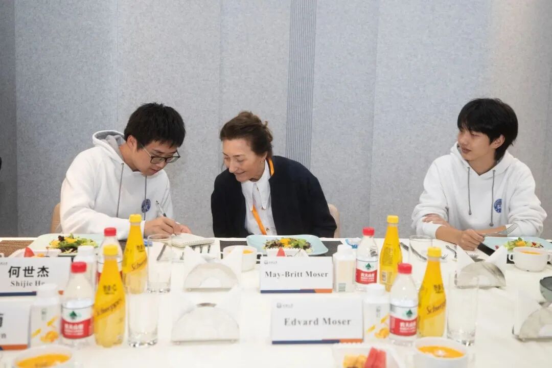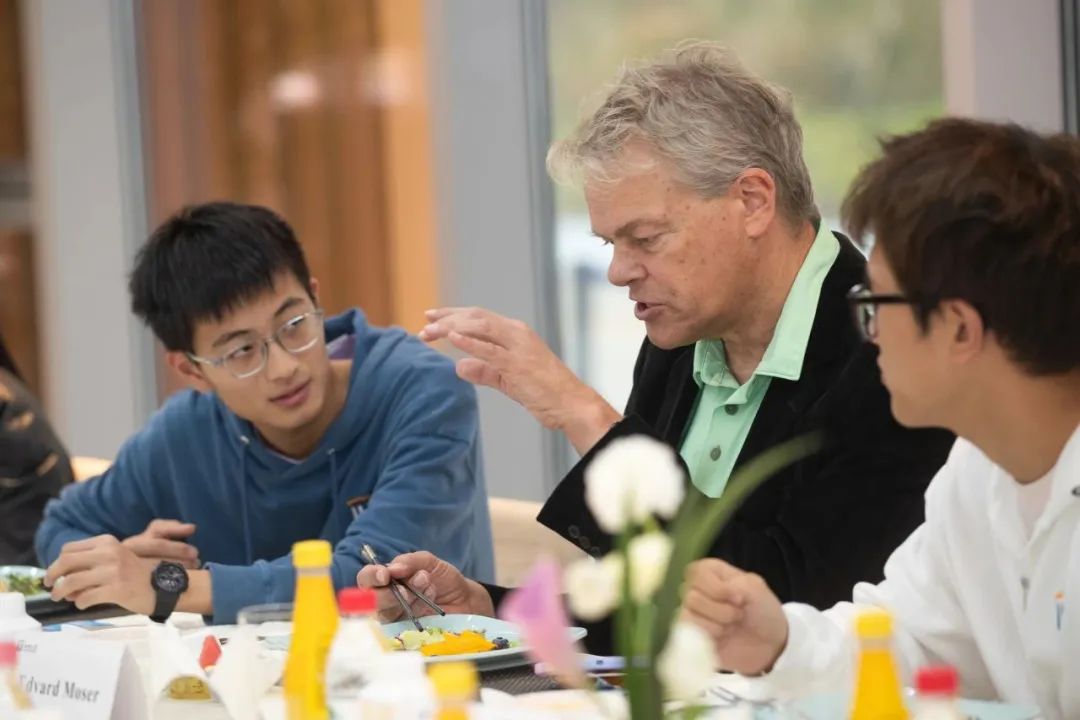 当年与她一同分享诺奖的合作者Edvard Moser,在她对面炫耀起了自己的“执筷”技能。“这是我第一次来西湖大学,这里很不一样,除了中英双语的环境,还有很多国际化的地方,这会让全球学术交流与合作变得顺畅许多。”他说。